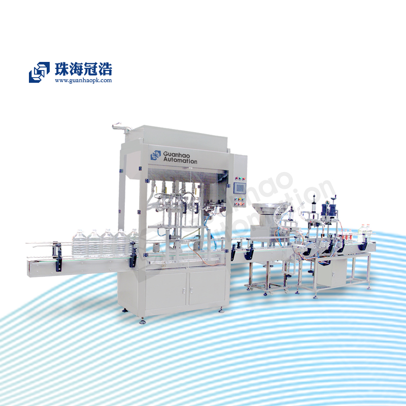 主要由6頭自流式灌裝機、壓蓋機、旋蓋機組成,主要適用于大瓶物體的自流灌裝。